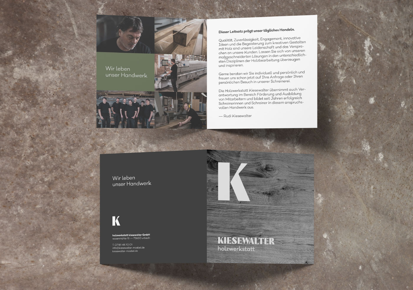 Traditionelles Handwerk trifft Leidenschaft. Die holzwerkstatt kiesewalter lebt das Handwerk. Die Begeisterung zum individuellen und kreativen Gestalten mit Holz ist ihre Leidenschaft. Wir hatten das Vergnügen, diese Individualität und Leidenschaft in den Fokus zu rücken und der holzwerkstatt kiesewalter einen neuen Look zu verschaffen. Dies beinhaltete unter anderem Branding, Website, Geschäftsausstattung und zahlreiche weitere Kommunikationsmaßnahmen.