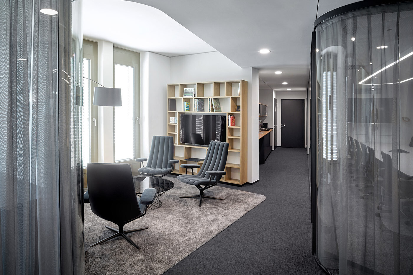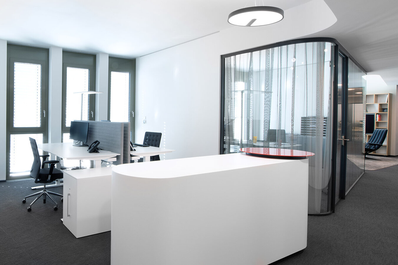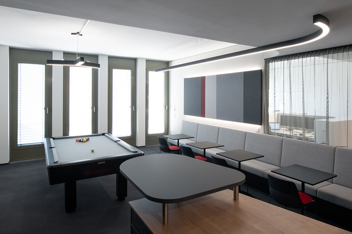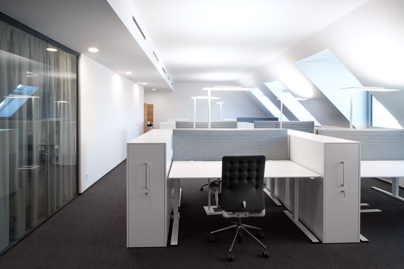 Stilvoll über den Dächern der Stadt – so lässt sich vortrefflich das neue Domizil von thi investments beschreiben. Der Dachgeschossausbau weist alle Formen einer modernen und anspruchsvollen Bürogestaltung auf. Arbeitsplätze im Open Space, mit individuell gestalteten Rückzugsmöglichkeiten, zonieren ebenso die Fläche wie die hochwertig ausgestatteten Einzelbüros und Besprechungsräume.